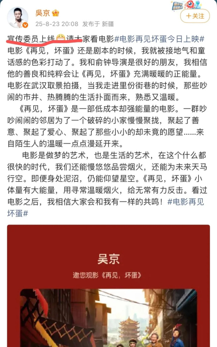 《重逢,坏东西》的撤档像一记闷棍。由吴京担任出品东谈主并客串,却在上映6天后以26.7万票房惨淡结束。而指摘区早已不是昔日的歌唱。 拔帜树帜的, 是如潮流般涌来的冷嘲热讽,吴京不再受偏疼,不再是电影的金字牌号。