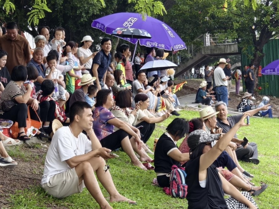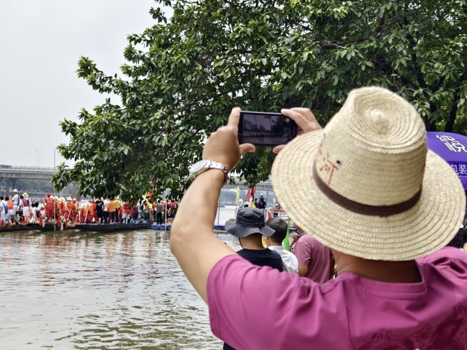 岸上围不雅的市民个个脸上飘溢着喜悦,男女老幼都有。石岗西龙船厂至石岗东龙舟船埠的河堤被挤得水泄欠亨。环球纷繁拿入部属手机或专科相机拍照、拍视频,纪录这慷慨东说念主心的时刻。