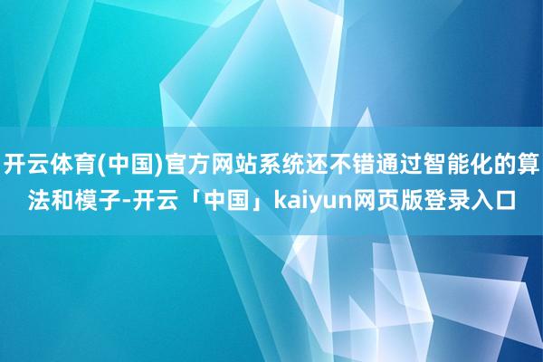 开云体育(中国)官方网站系统还不错通过智能化的算法和模子-开云「中国」kaiyun网页版登录入口