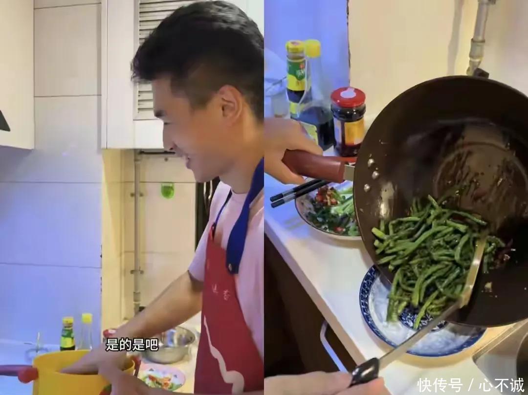 随后他又炒了谈干煸豆角,行动练习,网友都夸他万能,不光长得帅、会拍视频,作念菜也拿手。
