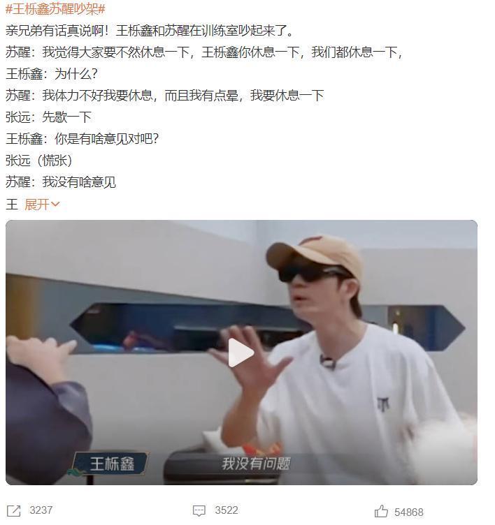 在训诲的流程中,苏醒冷漠民众休息一会,然后再进行训诲,而王栎鑫合计时期紧任务重先进行训诲,正因如斯,两东说念主发生矛盾打破,最终王栎鑫平直走出查考室。