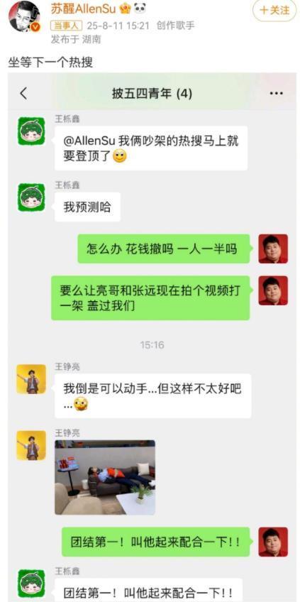 “苏醒王栎鑫吵架”话题还没来得及登顶,苏醒却率先一步作念出解说,他我方发出一张聊天记载,但愿王铮亮能打张远一顿,转动我方和王栎鑫吵架的珍重度。
