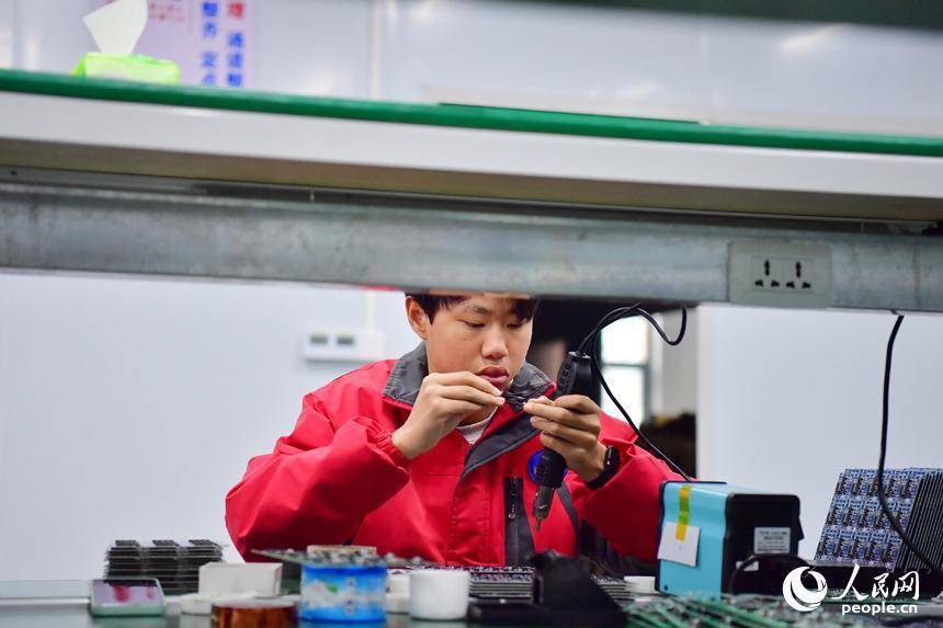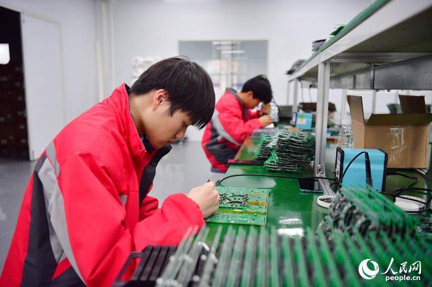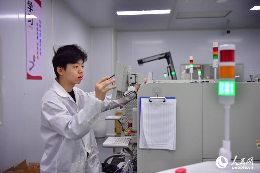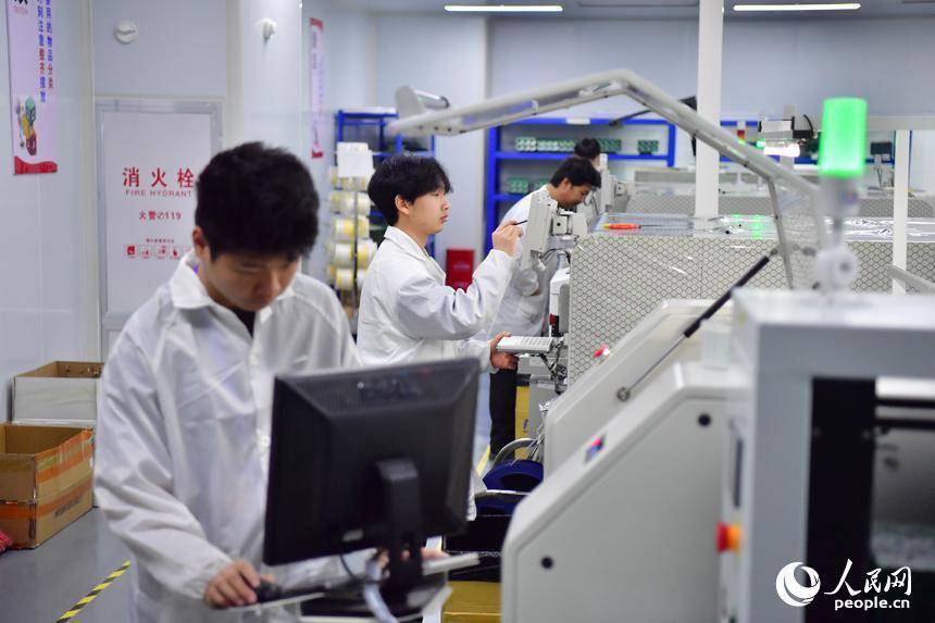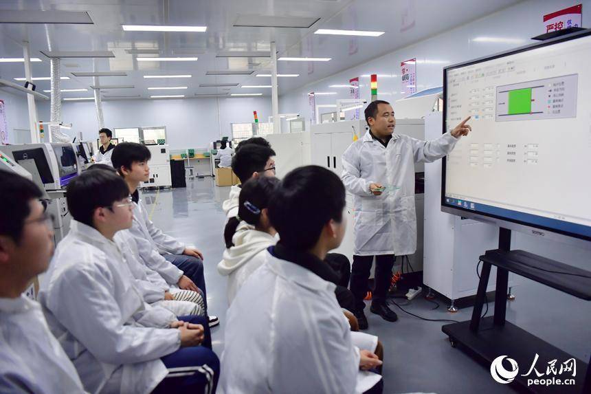 学生们正在坐蓐线上操作树立。东说念主民网记者 时雨摄