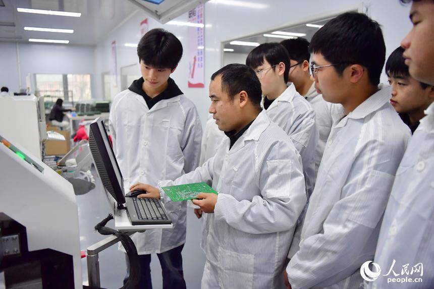 宜丰中等办事学校实训基地内,憨厚正在给学生上表面课。东说念主民网记者 时雨摄东说念主民网宜丰4月7日电 (记者时雨)日前,在江西省宜春市宜丰中等办事学校实训基地内,微电子、机电本领、数控本领专科的学生正专注操作树立,在竟然坐蓐线上练成关节。